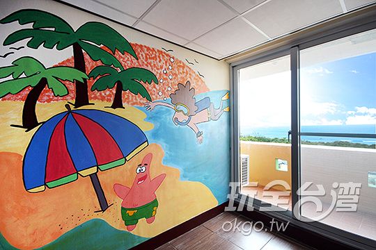 「綠島禾風旅棧」提供多間寬敞新穎的套房空間,以繽紛的牆面色彩搭配精緻可愛的塗鴉造景,規劃打造出溫馨的雅緻房型。彩繪塗鴉生動的姿態,令大小朋友都愛不釋手,忍俊不住的會心一笑。從頂樓即可清楚眺望寬廣無垠的蔚藍海景,點綴著綠色的山景和街道風情,更顯寧靜幽然,帶給旅客不同以往的寧靜與淡然。